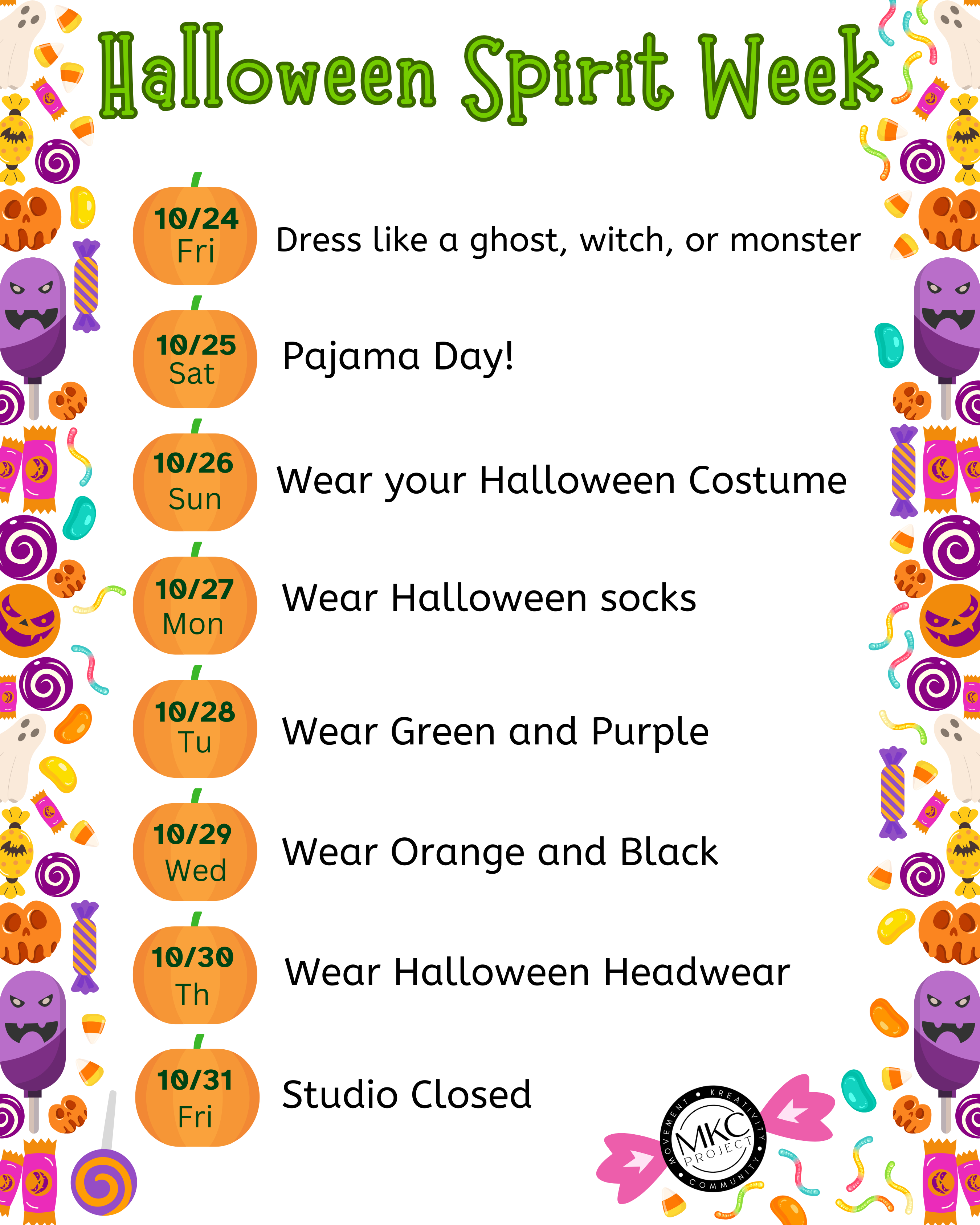 10/24-10:30: Spirit week: themed day or wear your costume to class!​